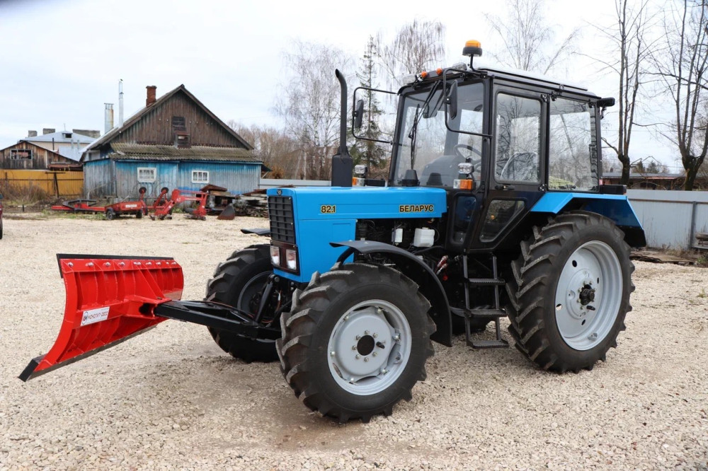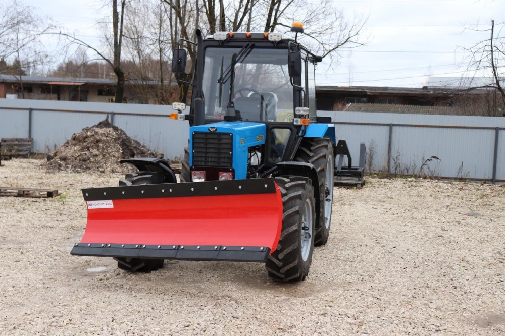 Отвал бульдозерного типа, изготовлен из стали, толщиной полотна 6 мм. Лопата поворотная, поворот осуществляется гидравлическим способом. Двухсторонняя лопата оснащена с одной стороны техническими пластинами, с другой ножами. Смена рабочих плоскостей осуществляется поворотным механизмом. Корпус плужного оборудования усилен, за счет этого отвал универсальный, его можно использовать для легких планировочных работ: выравнивания песка, щебня и прочих строительных материалов, а также для уборки снега. Установка отвала может осуществляться к тракторам 1,4 тягового класса.