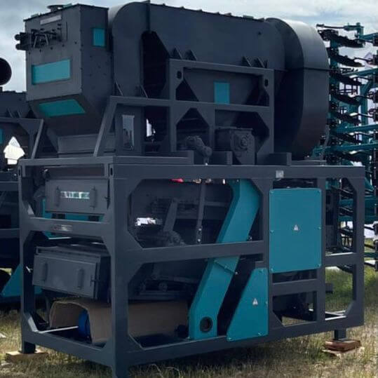 - высокое качество очистки воздухом за счет того, что воздушная система агрегата разомкнутая и выровненный воздушный поток, а легкие примеси улавливаются циклонами, которые можно установить до 10 м от машины*;